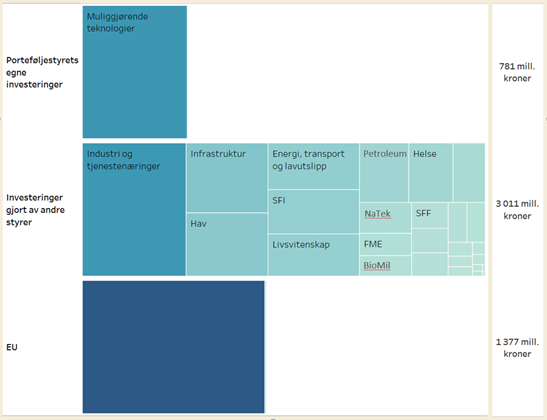 - Investere i forsknings- og innovasjonsprosjekter innrettet mot å utløse bærekraftig innovasjon og verdiskaping i nytt og eksisterende næringsliv basert på muliggjørende teknologier.